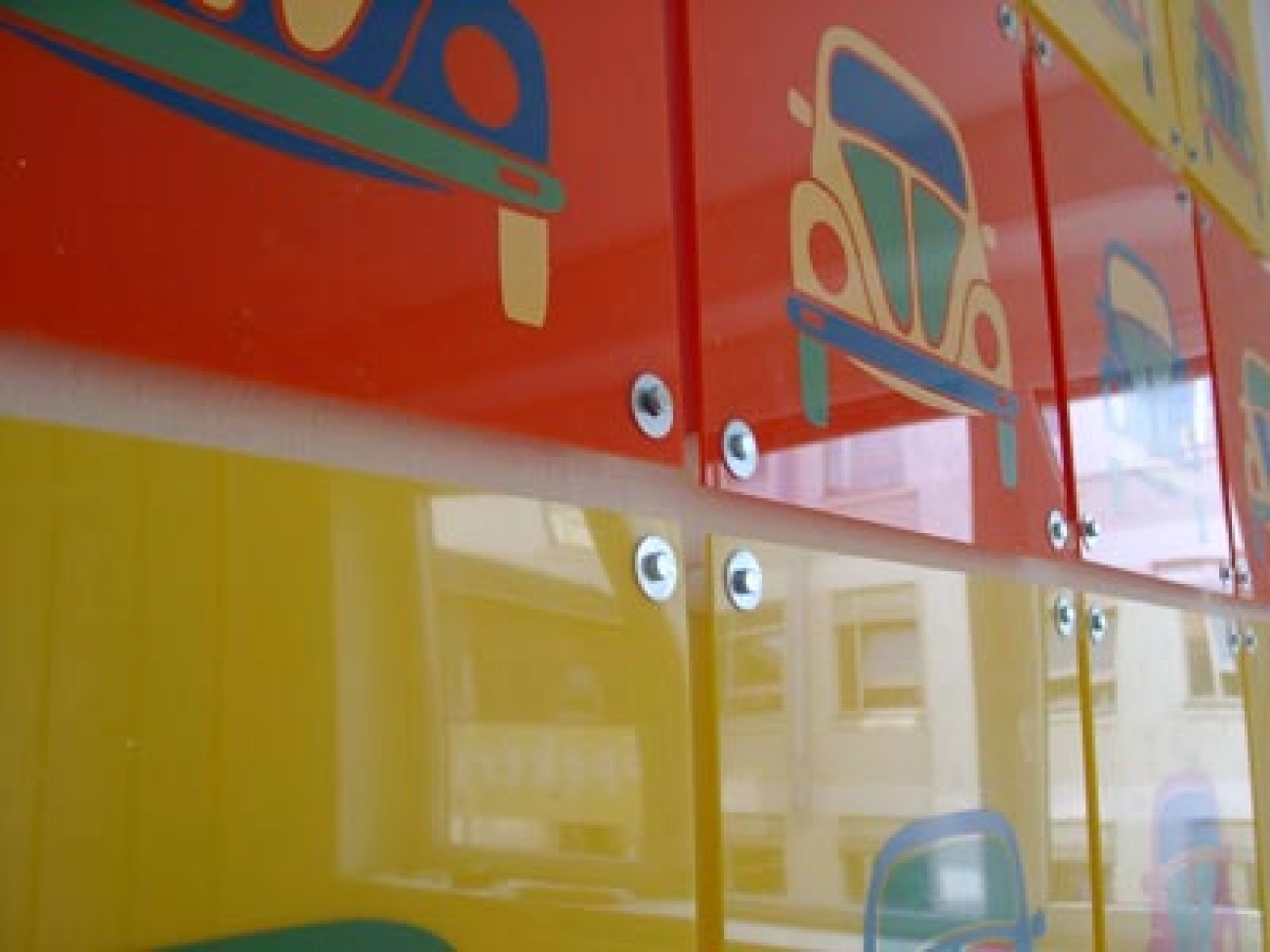 Während im großen Büro die Prilblumen dominieren, sorgen im neuen Raum Käfer für angemessene Farbigkeit. Vielen Dank an Imhof Werbung!