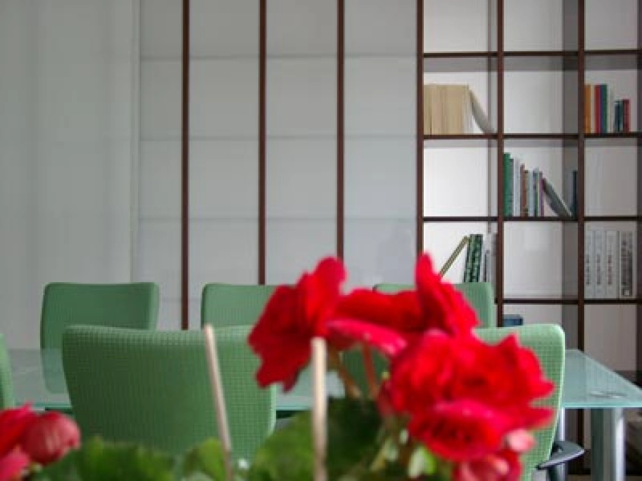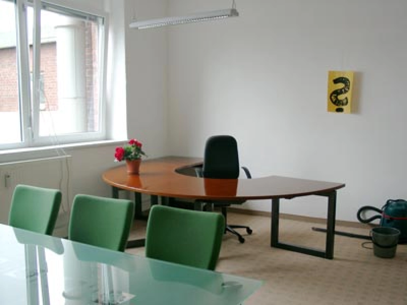 Raumteiler und Schreibtische sind Marke Eigenbau - genau wie im großen Büroraum. MDF-Platten von Ruff Holz, Plexiglas von Cadillac Plastic.