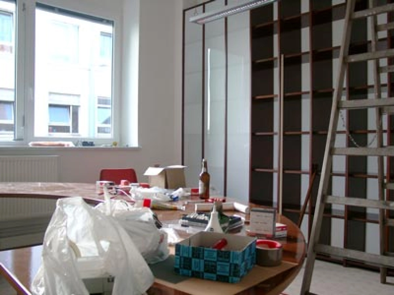 Hinter dem Raumteiler wurde noch nicht aufgeräumt. Noch heute abend soll alles blitzblank sein!