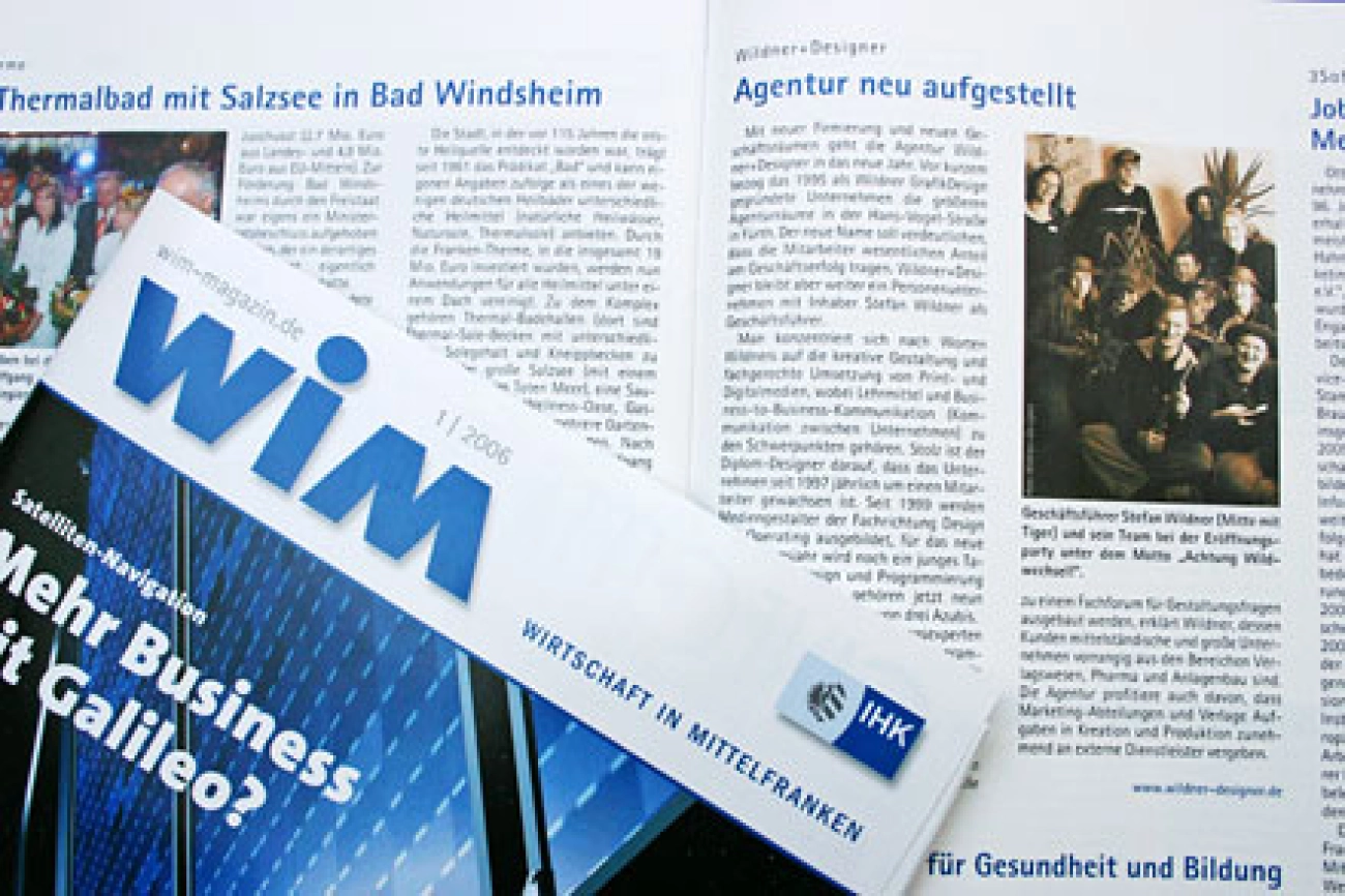 Mit neuer Firmierung und neuen Geschäftsräumen geht die Agentur Wildner+Designer in das neue Jahr. Vor kurzem bezog das 1995 als Wildner GrafikDesign gegründete Unternehmen die größeren Agenturräume in der Hans-Vogel-Straße in Fürth. Der neue Name soll verdeutlichen, dass die Mitarbeiter wesentlichen Anteil am Geschäftserfolg tragen. Wildner+Designer bleibt aber weiter ein Personenunternehmen mit Inhaber Stefan Wildner als Geschäftsführer.