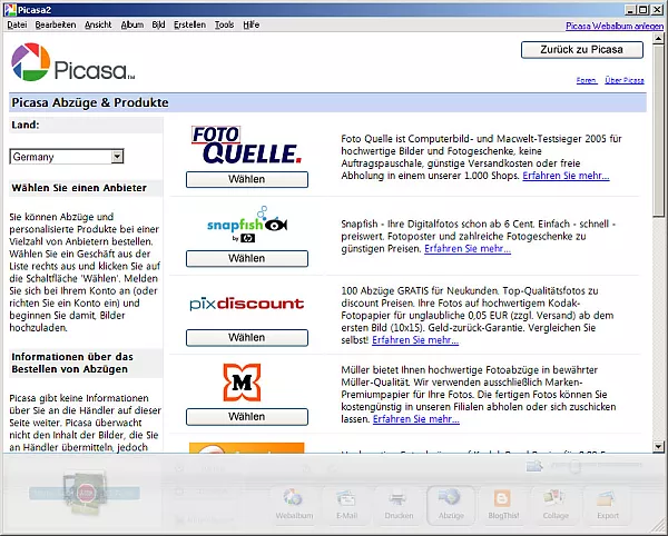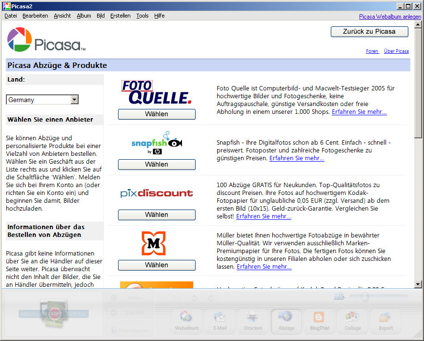 - Bilder einzeln oder als Diashow versenden und im Web präsentieren