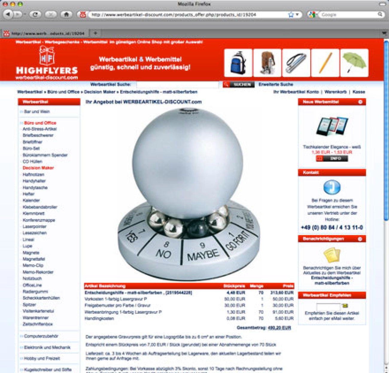 70 Stück für 490,20 EUR (zzgl. MwSt.)