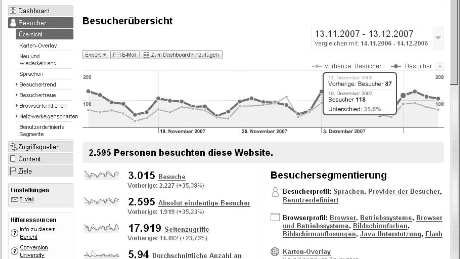 Neben den grundsätzlichen Informationen zur Anzahl von Besuchern und Besuchen erfährt man z. B. den Standort, die Spracheinstellungen, welche Browser verwendet werden, welche Bildschirmauflösungen verwendet werden etc. Dies liefert ebenfalls relevante Informationen zur aktuellen Reichweite und technischen Weiterentwicklung der Website.