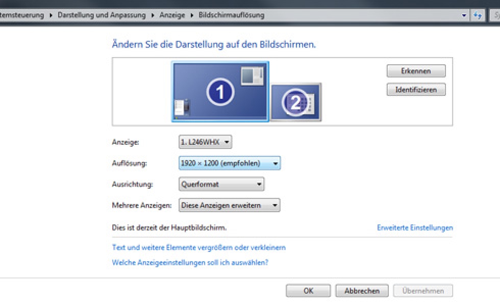 unter dem Punkt "Auflösung" Ihre aktuelle Monitorauflösung.