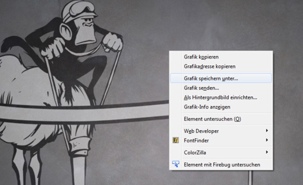 Zuerst entscheiden Sie sich für ein Motiv – z. B. aus unserer Sammlung "Wallpapers – State of Affen-Art". Haben Sie Ihren Favoriten gefunden, so können Sie diesen in der zu Ihrem Monitor passenden Auflösung herunterladen.