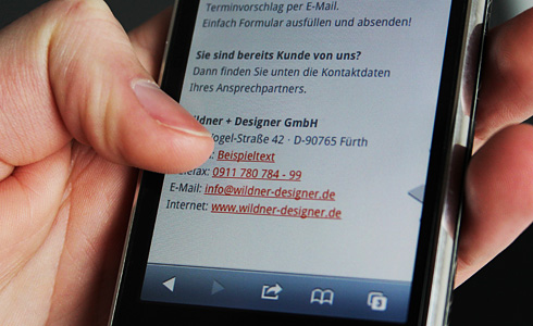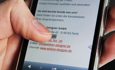 Sobald so ein Link gesetzt ist, kann man diesen jedoch auch anklicken. Das kann einen Besucher ohne Smartphone sehr schnell irritieren, da ein Desktop-Browser mit dem "tel:"-Protokoll nichts anzufangen weiß. Um dieses Problem zu beheben, sollte man gestalterische Unterscheidungen für Mobilgerät beziehungsweise Desktop-Rechner definieren.