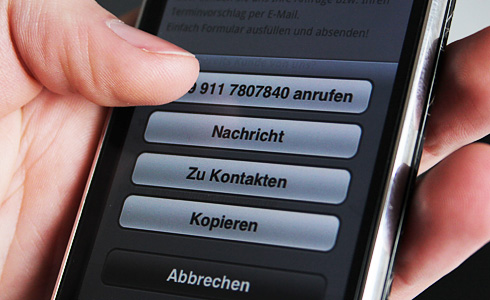 Das korrekte Formatieren der Telefonnummer nach einem internationalen Standard bringt zwar eine hohe Kompatibilität mit, jedoch zu Lasten der Lesbarkeit. Abhilfe schafft hier die freie Gestaltungsmöglichkeit durch das Setzen eines Links mit dem Protokoll "tel:".
