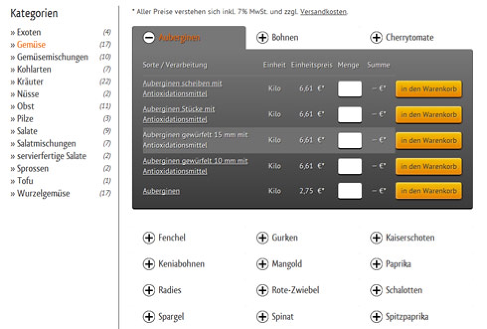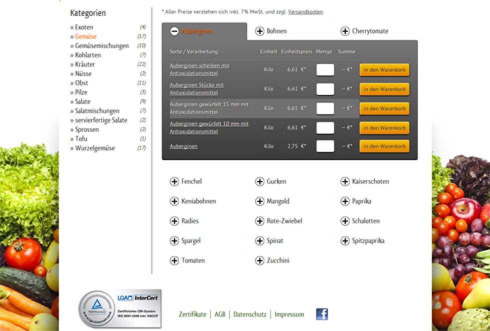 Mit einem zugangsbeschränkten Shop speziell für Gastronomie-Kunden wird der bisher über Fax und Telefon erfolgte Bestellprozess vereinfacht. Durch die stets aktuelle Präsentation des Produktsortiments im Online-Shop unter gastro.gemuese-nuernberg.de können die Kunden zudem tagesaktuell die Verfügbarkeit der einzelnen Produkte prüfen. Über praktische Funktionen wie die Bestellhistorie und speicherbare Warenkörbe können die Kunden komfortabel ihre Einkäufe planen und zum Wunschtermin liefern lassen.
