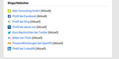 Die Strategie- und Management-Beratungsfirma Seiz Consulting stellt ein gutes Praxisbeispiel für die Vernetzung im Internet dar. Reiner Seiz, Inhaber von Seiz Consulting, war in verschiedenen verantwortungsvollen Bereichen tätig und war zuletzt als Vorstandsmitglied bei Puma beschäftigt. So ist es für ihn als selbstständiger Unternehmer nun naheliegend, das aufgebaute Netzwerk mit Hilfe von Social Media-Plattformen zu erhalten und auszubauen. Nähere Infos zur Referenz finden Sie hier.