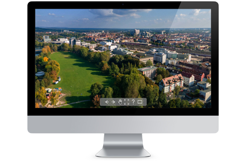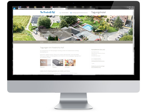 Auf einer separaten Website zum Thema Tagungsräume sollte das gesamte Areal übersichtlich und eindrucksvoll dargestellt werden. Dies gelingt nun bereits auf der Startseite mittels einer großen Panorama-Luftaufnahme.