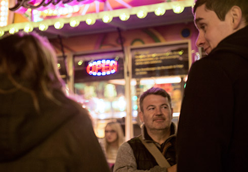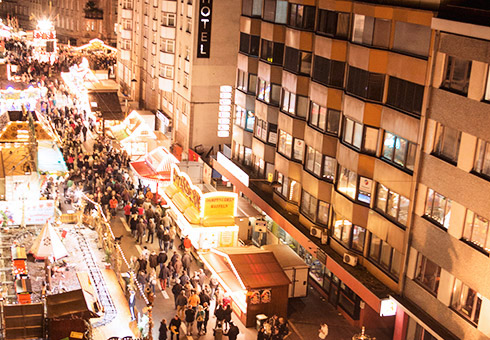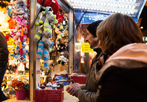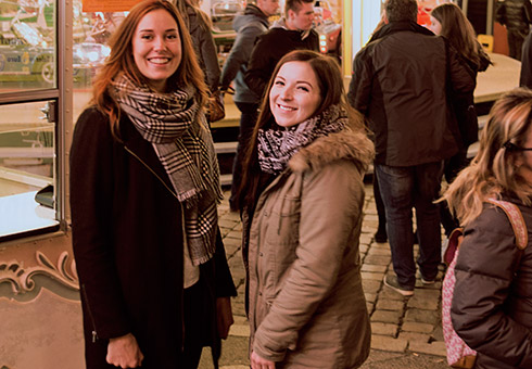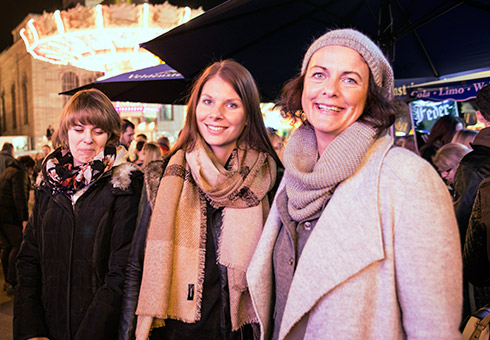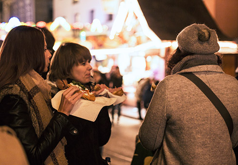 Warm eingepackt und mit Mütze und Handschuhen bewaffnet ließen wir uns von dem kalten Abend nicht die Laune verderben. Auch der heiße Glühwein wärmte. Und herzhafte Speisen – vom traditionellen Backfisch bis zu wirklich leckeren Langos direkt auf die Hand – durften nicht fehlen.