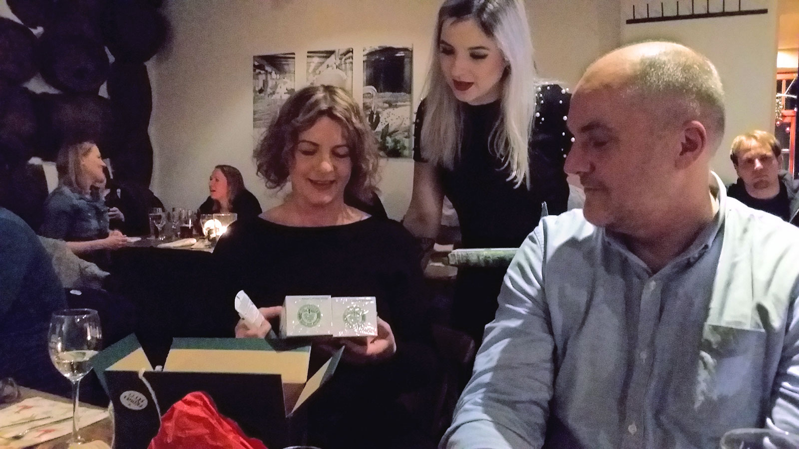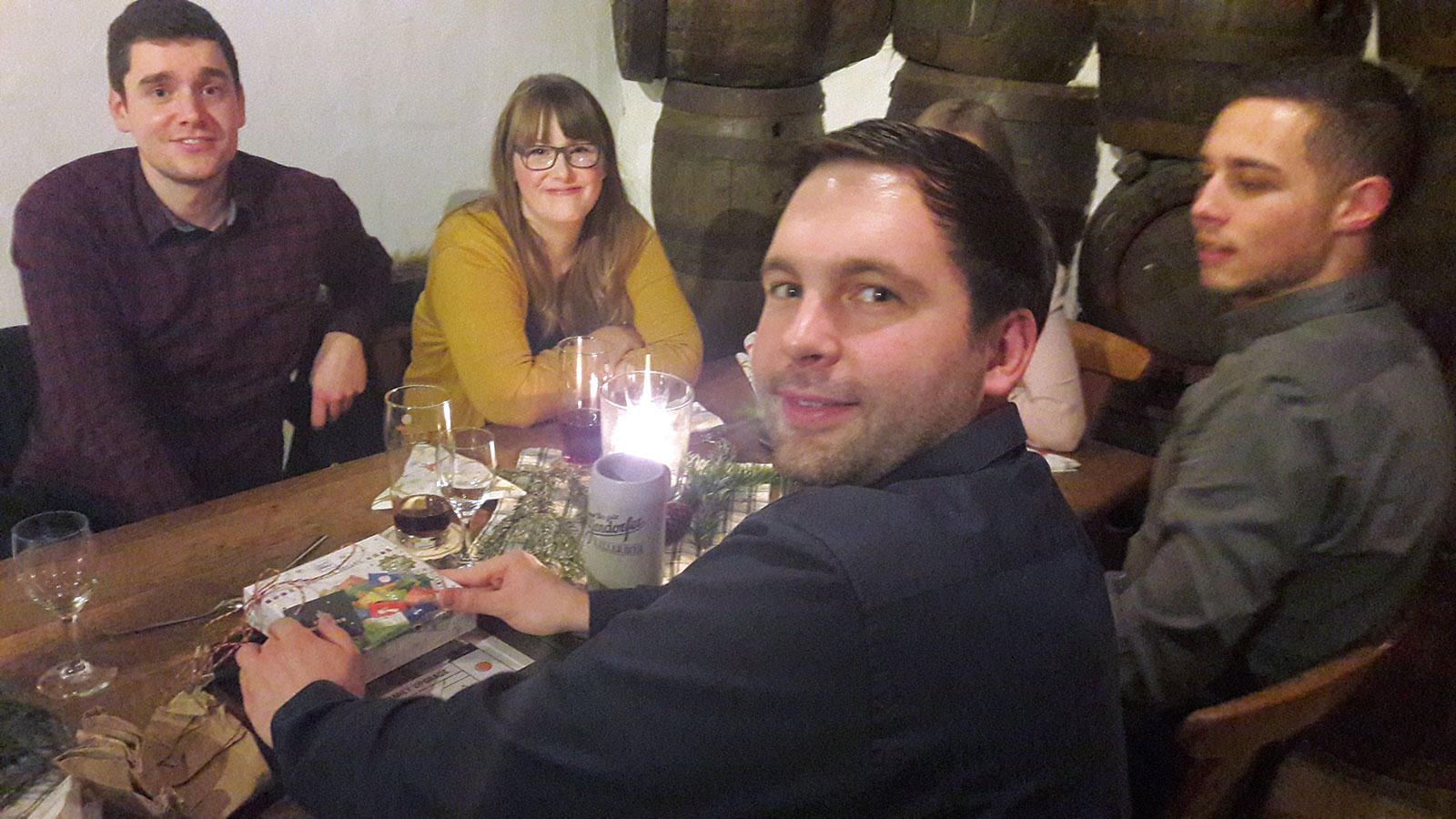Nach dem wohlschmeckenden 3-Gänge-Menü starteten wir mit unserem traditionellen Weihnachts-Wichteln. Auch dieses Jahr musste jeder Mitarbeiter erraten, von wem er beschenkt wurde. Obwohl es bei einigen etwas länger dauerte, konnten schließlich doch alle Geschenke einem Kollegen zugeordnet und sich gebührend dafür bedankt werden.