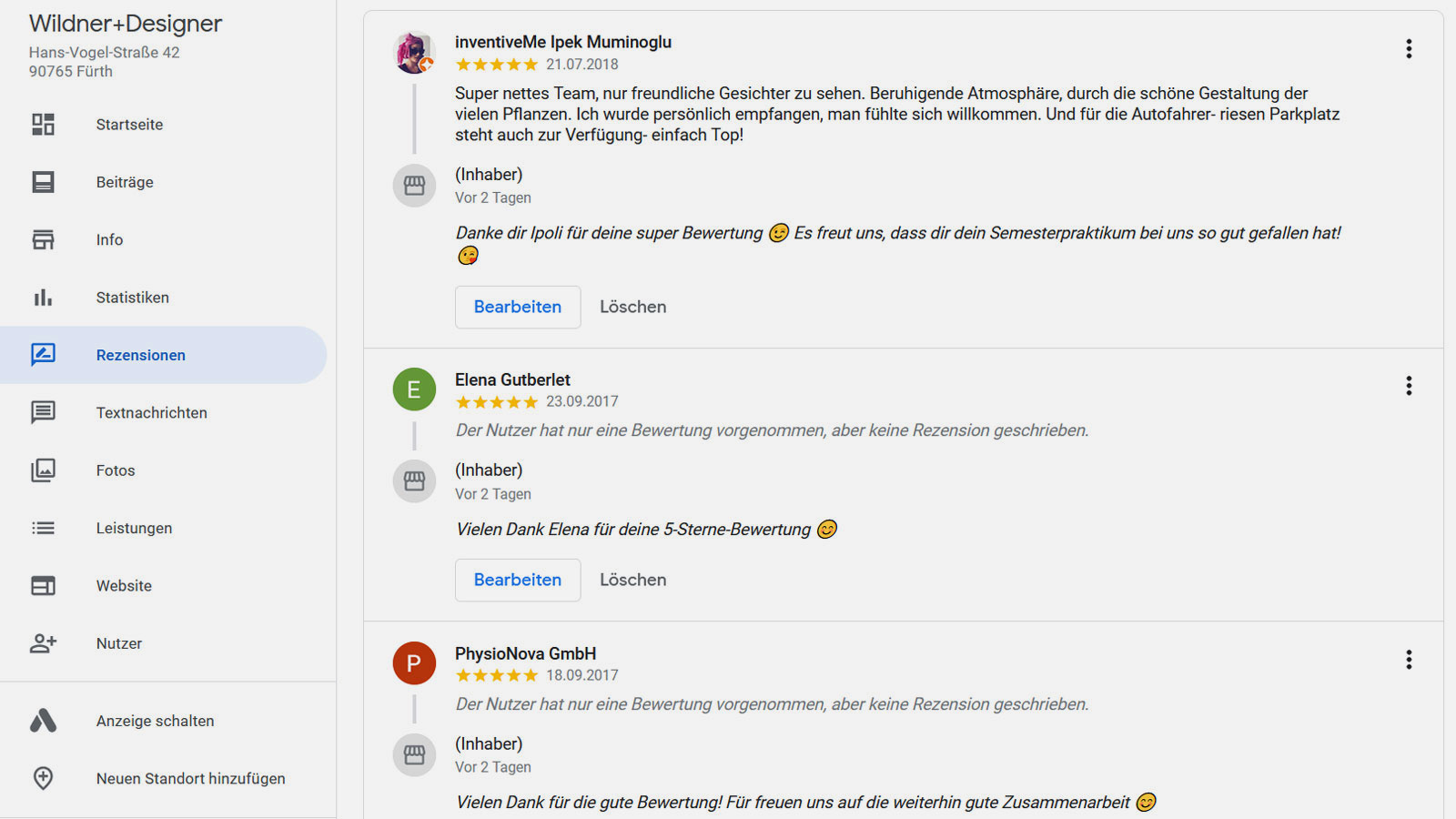 Über den My-Business-Account lassen sich die Rezensionen ebenfalls verwalten. Man kann auf Bewertungen antworten oder sie als unangemessen melden.