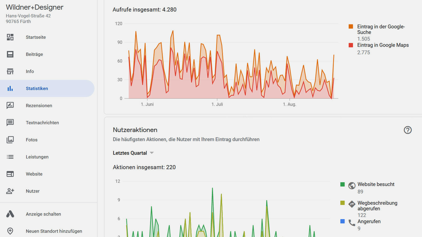 - Nutzung des My-Business-Statistiken, z. B. zur Suchmaschinenoptimierung