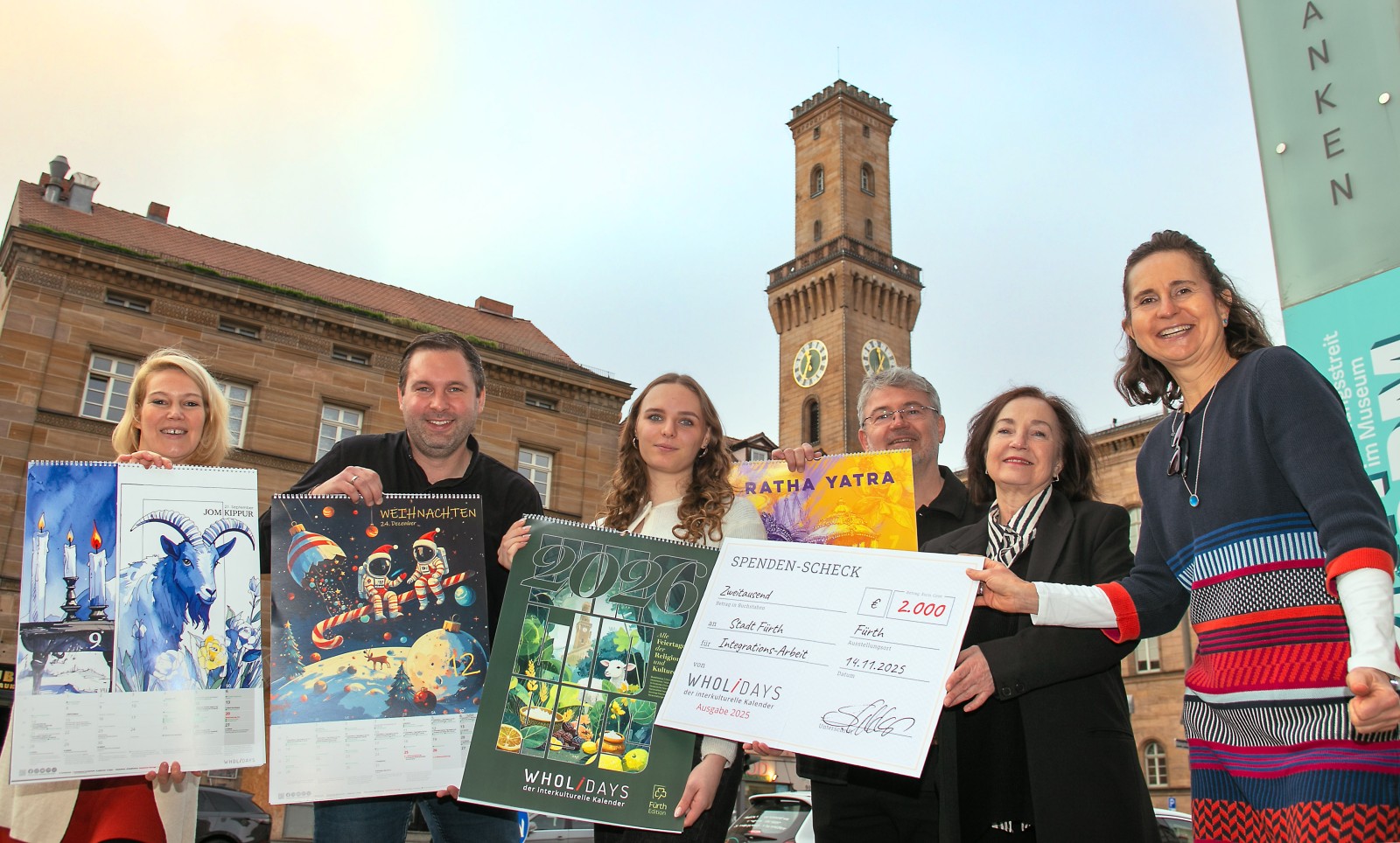 Wem die interkulturelle Idee und das innovative Design von wholidays 2026 gefällt, der sollte zuschlagen – für sich selbst oder als Geschenk für andere. Neben städtischen Einrichtungen und dem Jüdischen Museum Fürth unterstützen uns auch in diesem Jahr wieder lokale Buchhandlungen und weitere Einzelhändler als Verkaufsstellen. Der Kalender ist online erhältlich auf Amazon (überregionale Ausgabe / Fürth-Edition). Die neue Ausgabe wird auch wieder über den Fachverlag Hans Carl bundesweit im Buchhandel angeboten: ISBN 978-3-418-00137-1. Und das Beste: Der gesamte Reinerlös fließt in sinnvolle, gemeinnützige Projekte.